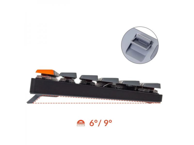 - Тонкий но прочный корпус - Корпус из авиационного алюминия делает Корпус из авиационного алюминия делает клавиатуру прочной и изящно тонкой. К нижней пластиковой рамке добавлена стальная пластина, чтобы укрепить конструкцию корпуса K5 SE, и сохранить при этом стабильную беспроводную передачу сигнала.