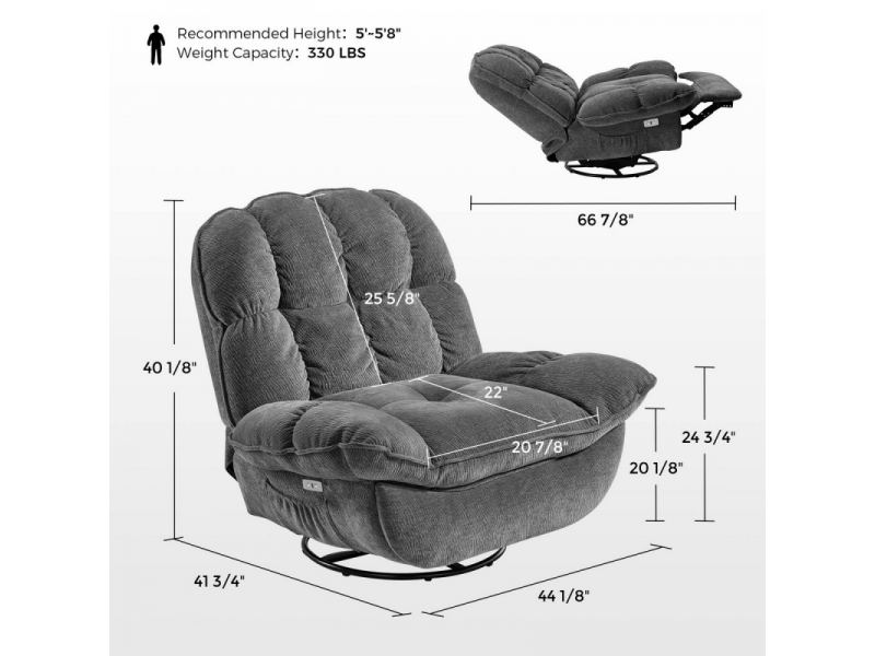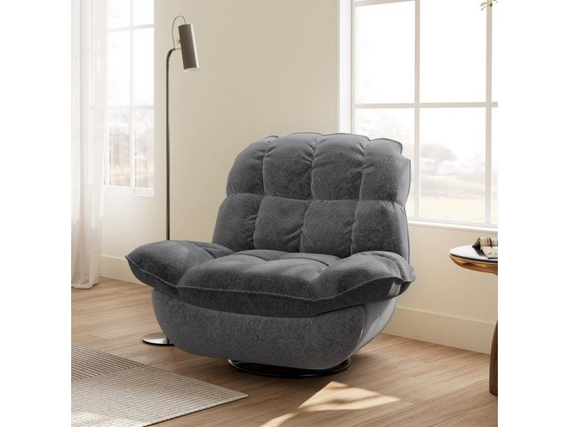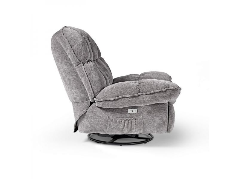 Это вращающееся кресло-качалка с реклайнером выполнено из мягкой и бархатистой ткани, которая приглашает вас погрузиться в ее щедрую амортизацию, чтобы расслабиться и отдохнуть после долгого дня.