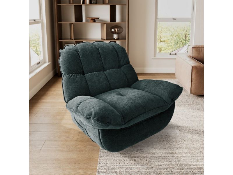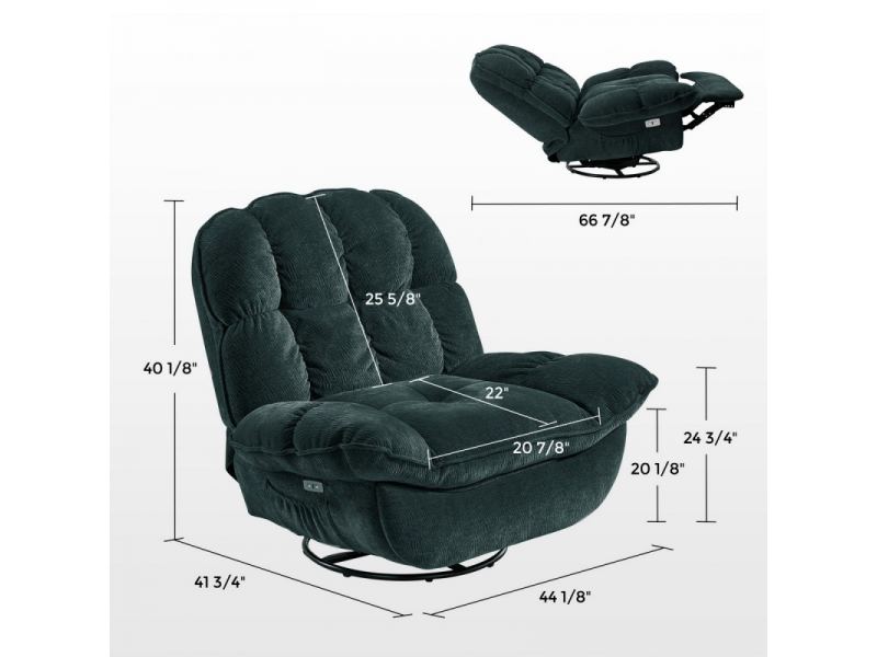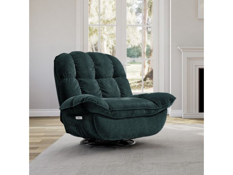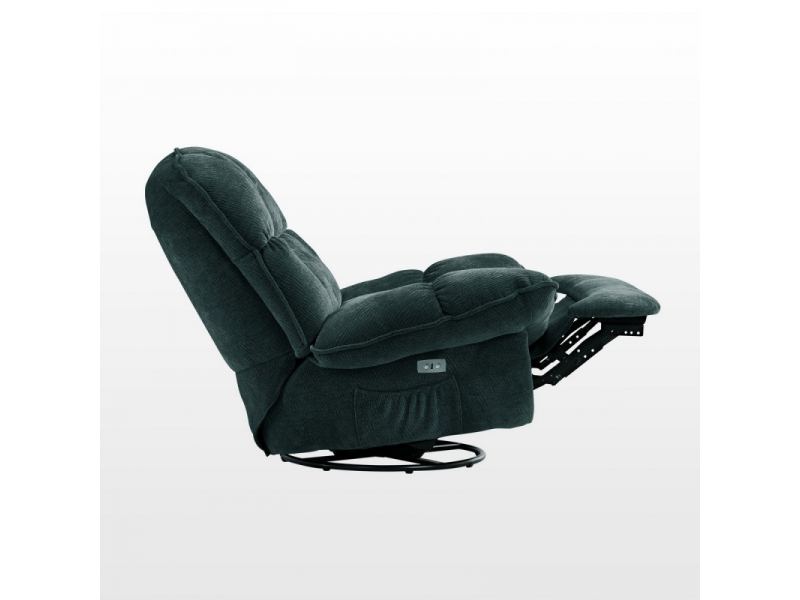 Это вращающееся кресло-качалка с реклайнером выполнено из мягкой и бархатистой ткани, которая приглашает вас погрузиться в ее щедрую амортизацию, чтобы расслабиться и отдохнуть после долгого дня.