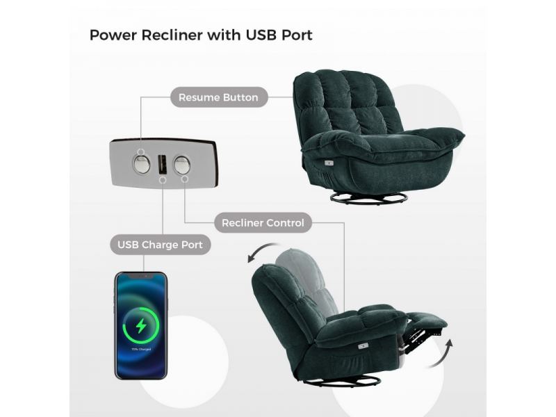 Электрическое кресло-реклайнер Eureka с местом для хранения вещей, зелёный