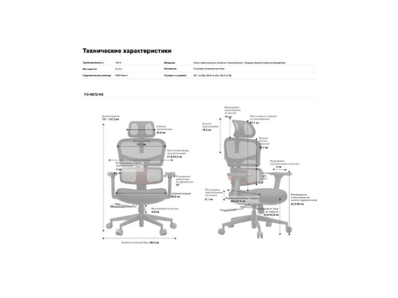 Эргономичное компьютерное кресло FoxGear NETZ модель XO - office edition, серый