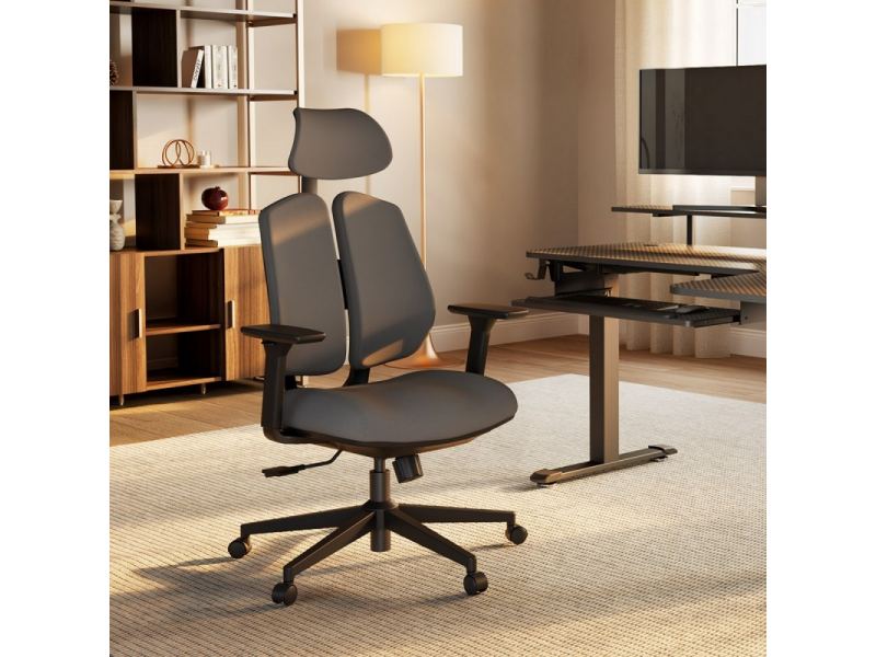 - Адаптивная конструкция с двойной спинкой: зазор позвоночника распределяет давление, спинку сиденья можно наклонять влево и вправо. Подходит для длительной сидячей офисной работы а также для геймеров.