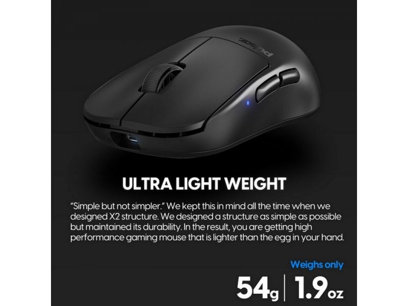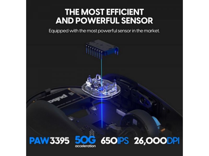Pulsar разработали конструкцию как можно проще, но сохранили ее долговечность. В результате вы получаете высокопроизводительную ультралегкую игровую мышь. Она весит всего 54 грамм. Оснащена флагманским датчиком PixArt PAW3395, обеспечивающим скорость 650 IPS, ускорение 50 g, программируемое разрешение 26 000 DPI и частоту опроса 1000 Гц/1 мс. Точно настройте все с помощью нашего программного обеспечения. Программируйте клавиши, создавайте макросы, чтобы настроить Pulsar X2 Wireless под себя.