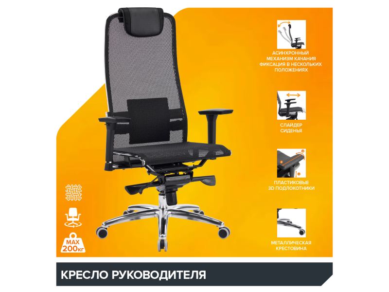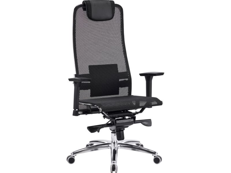 2. **Высококачественные материалы:** Обивка из сетки черного цвета придаёт креслу роскошный вид и обеспечивает простоту в уходе. Этот материал устойчив к износу и сохраняет первоначальный вид на протяжении долгих лет.