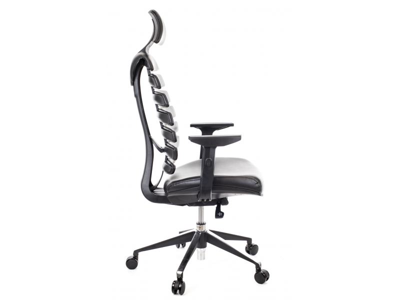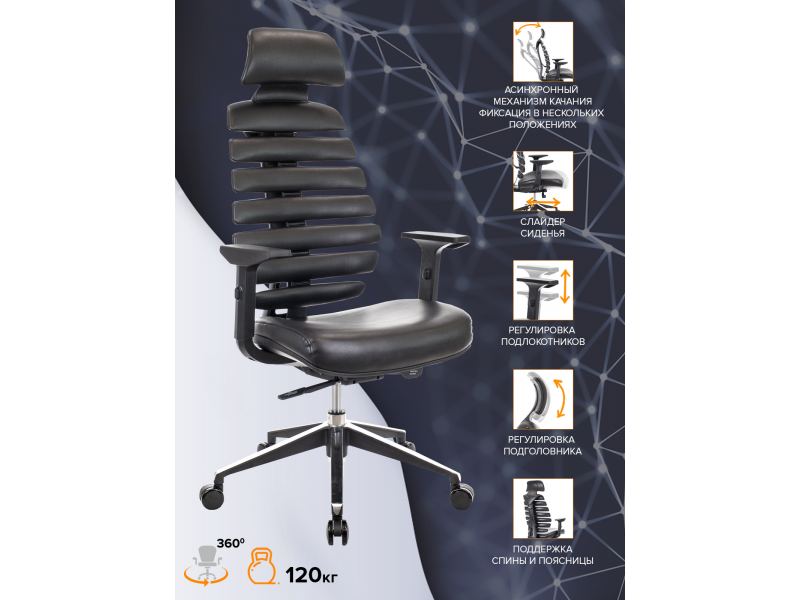 Кресло Everprof Ergo Black экокожа черного цвета - это эргономичное кресло с регулируемыми подлокотниками, подголовником и поясничной поддержкой. Оно имеет механизм качания, который позволяет регулировать глубину сидения и фиксировать кресло в нескольких положениях. Каркас кресла выполнен из алюминия, а полозья отсутствуют. Обивка выполнена из экокожи, которая обеспечивает комфорт и долговечность. Кресло имеет допустимую нагрузку до 120 кг и подходит для людей среднего телосложения. Ролики для паркета диаметром 11 мм обеспечивают плавное движение кресла по поверхности пола.