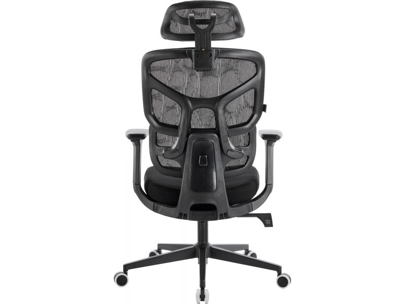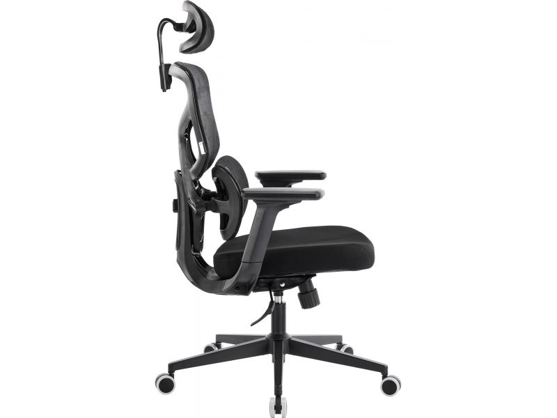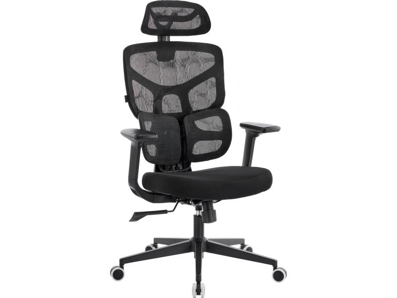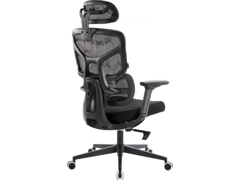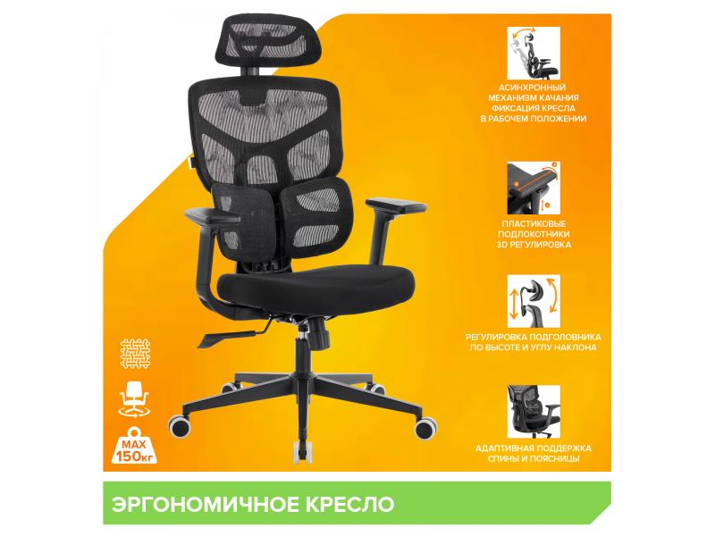 Высокая спинка выполнена из износостойкой сетки, которая обеспечивает хорошую вентиляцию и сохраняет комфорт даже в жаркую погоду. Регулируемый подголовник помогает снизить нагрузку на шею, а адаптивная поясничная поддержка подстраивается под особенности пользователя, обеспечивая правильное положение позвоночника.