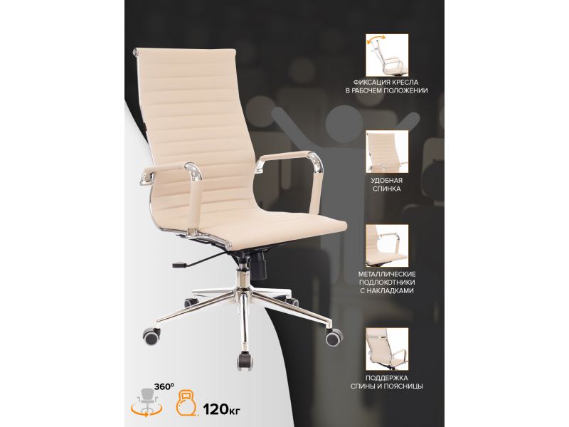 Кресло Everprof Rio T в бежевом цвете выполнено из высококачественного экокожаного материала и представляет собой элегантное и стильное кресло для офиса или домашнего использования.