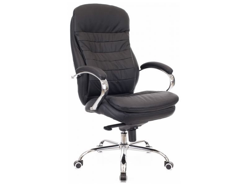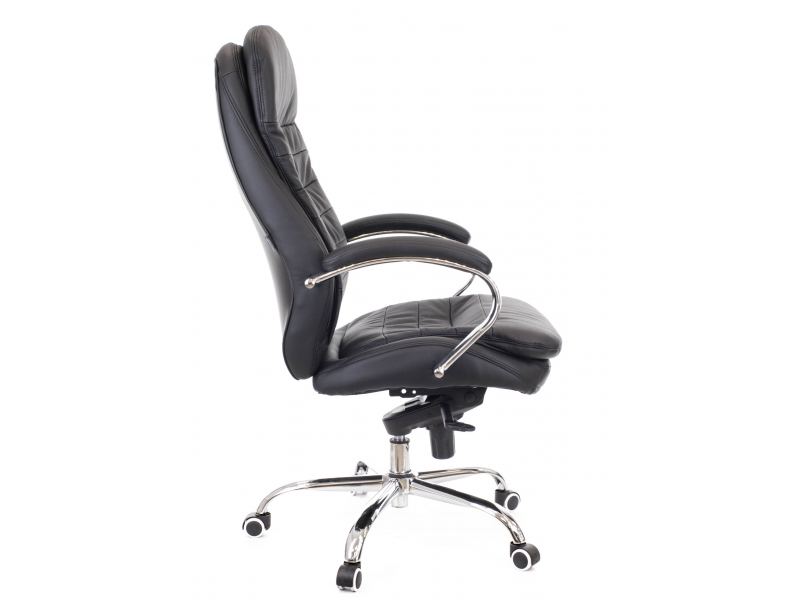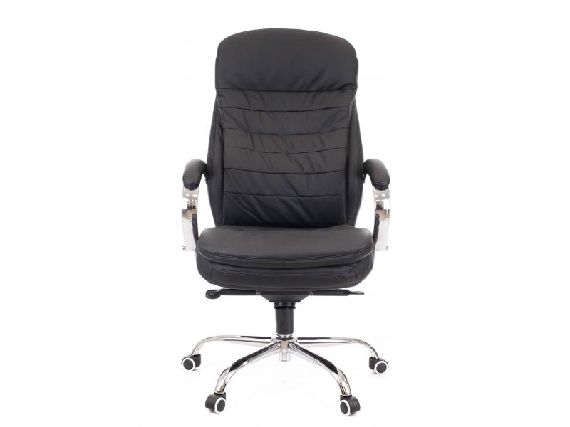 Кресло Everprof Valencia M Кожа Черный - представляет собой элегантное и комфортное кресло для руководителя, обитое натуральной кожей черного цвета. Металлические подлокотники дополнены накладками из натуральной кожи, что добавляет креслу изысканности. Отсутствие подголовника позволяет использовать кресло людям разного роста и телосложения.