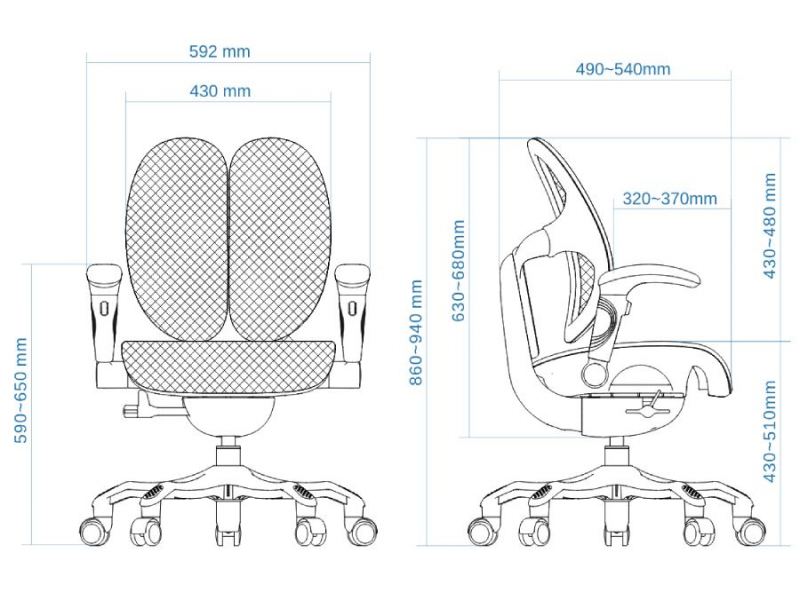 Главной особенностью спинки кресла EXPERT ORTO является ортопедическая корсетная форма с адаптивным каркасом, что обеспечивает оптимальную эластичность и поддержание правильного положения спины. Важно отметить, что использование сетчатого материала обеспечивает правильную анатомическую форму и предотвращает вредные наклоны на одно плечо. Механизм изменения высоты каркаса спинки дает возможность настроить кресло в соответствии с положением поясницы, а рамная конструкция с плотно натянутой сеткой обеспечивает максимальное соприкосновение со спиной пользователя, что снижает негативное воздействие осевой нагрузки.