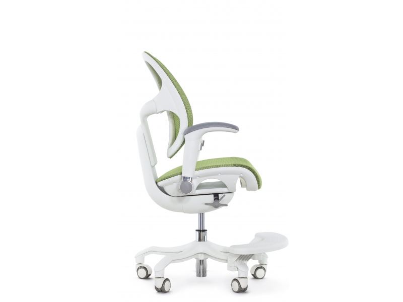 Дополнительную универсальность конструкции кресла EXPERT ORTO придает широкая комфортная подножка, которая позволяет использовать кресло с различными стандартными столами и партами, в том числе с письменными столами, имеющими стандартную высоту в 75 см. Подножка является съемной и устанавливается по мере необходимости, обеспечивая анатомически правильное положение ног. Это особенно важно для организации рабочего места ребенка или человека с небольшим ростом, так как подножка, неразделимая с конструкцией кресла, обеспечивает анатомически правильное положение и предотвращает возникновение неприятных последствий, связанных с неправильной посадкой. Кроме того, обивка кресла изготовлена из сетчатого материала DuPONT оригинального плетения с высокой эластичностью, который придает креслу исключительную надежность и комфортность. Этот материал обладает отличными свойствами легкости очистки и не впитывает загрязнения, что особенно важно для подростков, которые часто используют кресло в повседневной жизни.