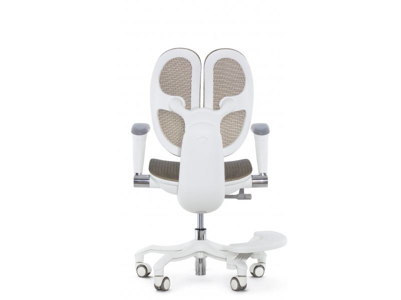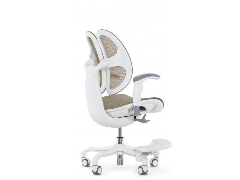 Дополнительную универсальность конструкции кресла EXPERT ORTO придает широкая комфортная подножка, которая позволяет использовать кресло с различными стандартными столами и партами, в том числе с письменными столами, имеющими стандартную высоту в 75 см. Подножка является съемной и устанавливается по мере необходимости, обеспечивая анатомически правильное положение ног. Это особенно важно для организации рабочего места ребенка или человека с небольшим ростом, так как подножка, неразделимая с конструкцией кресла, обеспечивает анатомически правильное положение и предотвращает возникновение неприятных последствий, связанных с неправильной посадкой. Кроме того, обивка кресла изготовлена из сетчатого материала DuPONT оригинального плетения с высокой эластичностью, который придает креслу исключительную надежность и комфортность. Этот материал обладает отличными свойствами легкости очистки и не впитывает загрязнения, что особенно важно для подростков, которые часто используют кресло в повседневной жизни.