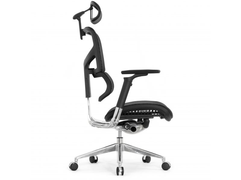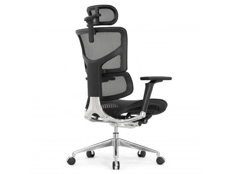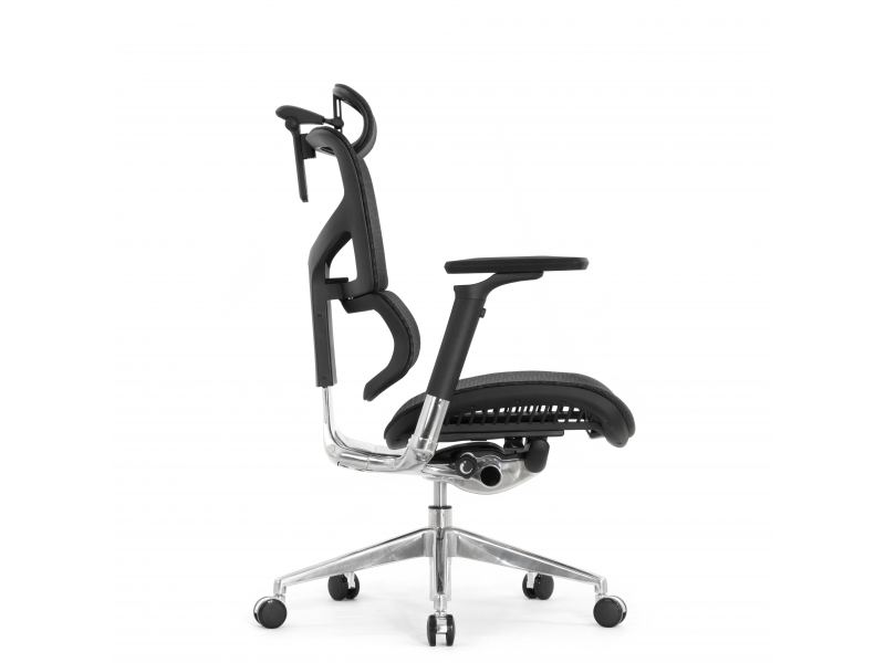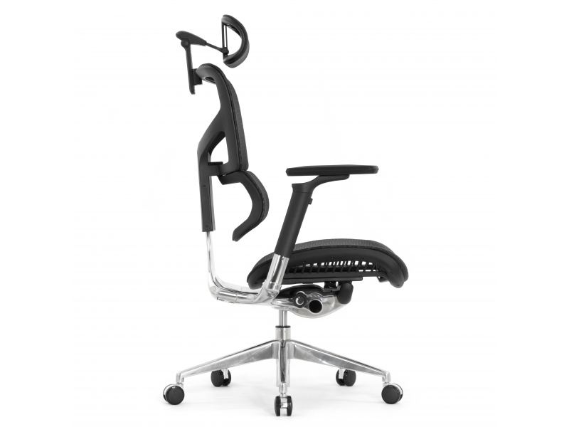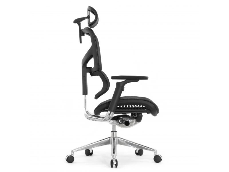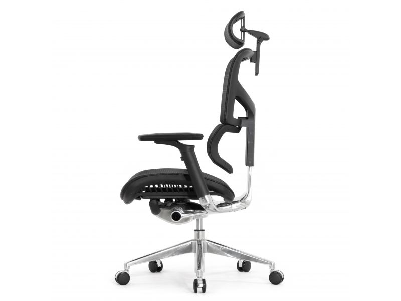 - Подголовник регулируется по высоте, углу наклона и обеспечивает необходимую поддержку шейному отделу и плечам, фиксируя их в одном положении на время работы. Есть возможность настроить оптимальное положение – под уникальные характеристики тела человека и тем самым снизить нагрузку в режиме работы или отдыха.