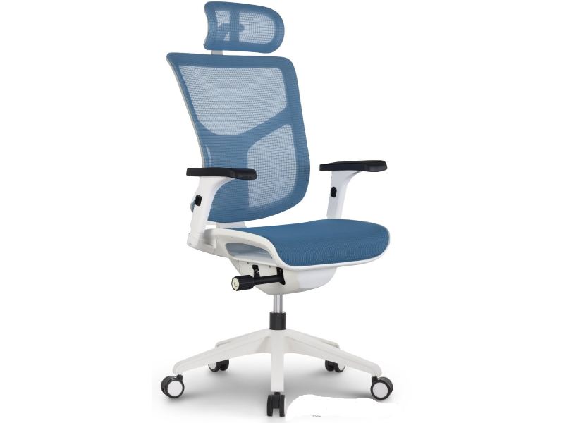 Эргономичное компьютерное с инновационным синхромеханизмом «Эрго-Синхро» EXPERT Vista голубая сетка, каркас белый.