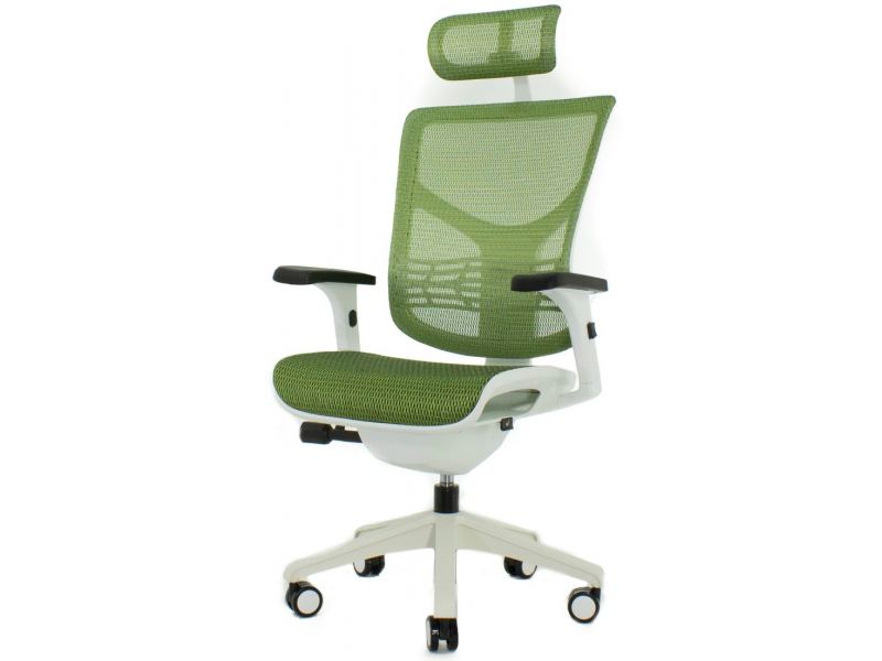 Эргономичное компьютерное с инновационным синхромеханизмом «Эрго-Синхро» EXPERT Vista зеленая сетка, каркас белый.