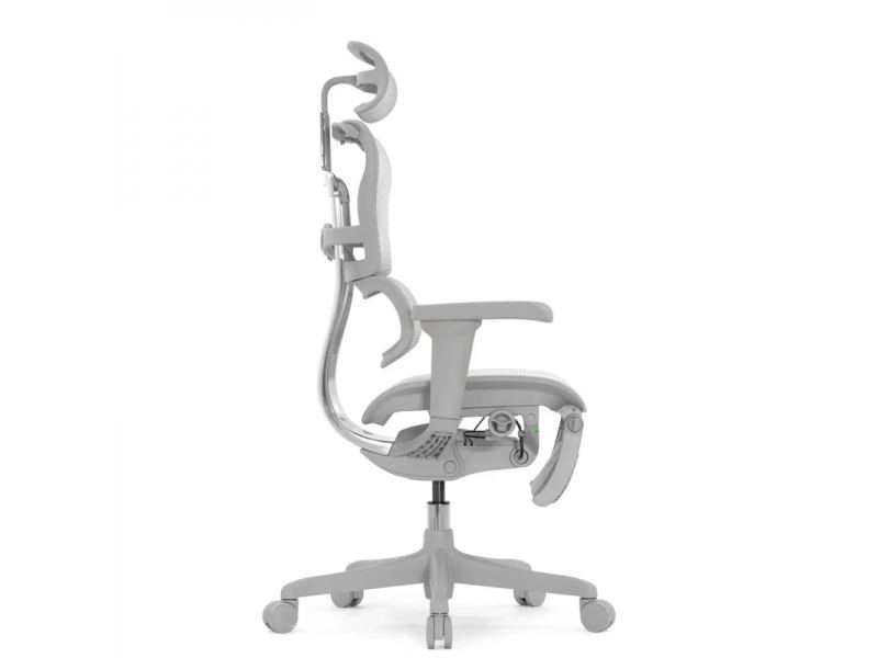 Кресло оснащено спинкой с гибкой поясничной опорой 6D, которая регулируется по натяжению и высоте, поддерживая правильное положение позвоночника. 2D подголовник легко настраивается по высоте и углу наклона, чтобы снять напряжение с шеи и верхней части спины.