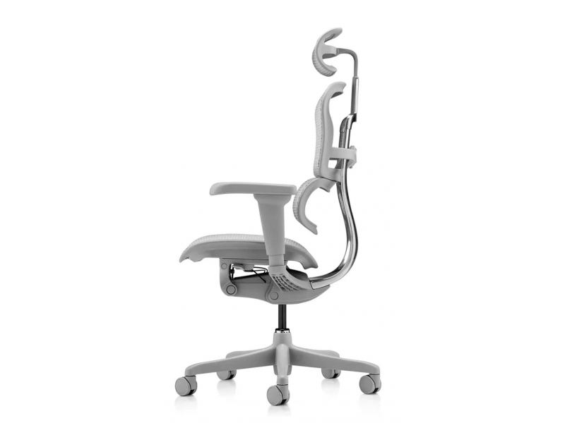 Кресло оснащено спинкой с гибкой поясничной опорой 6D, которая регулируется по натяжению и высоте, поддерживая правильное положение позвоночника. 2D подголовник легко настраивается по высоте и углу наклона, чтобы снять напряжение с шеи и верхней части спины.