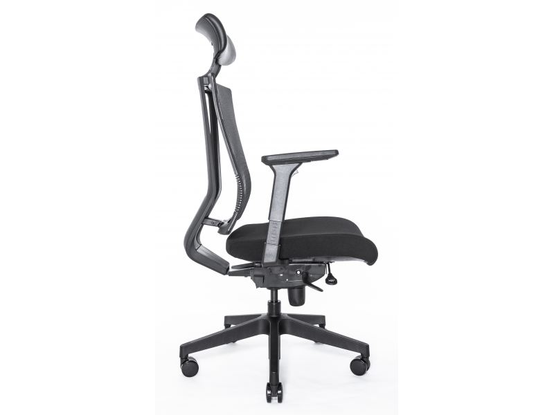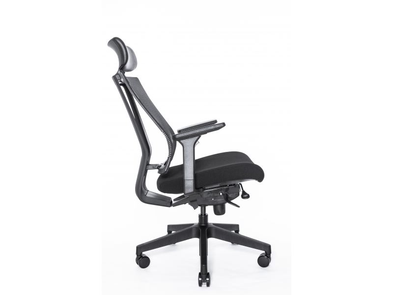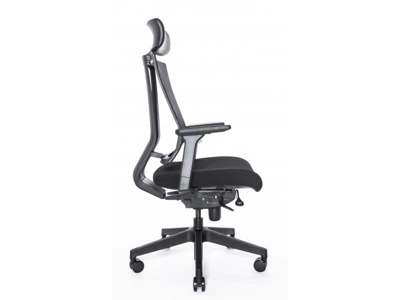 Эргономичное сиденье изготавливается путем применения плотного пенополиуретанового наполнителя и обивки из износостойкой ткани серого, синего или черного оттенка.Сетчатая спинка дополняется механизмом для поясничной поддержки, действие которого усиливается за счет эластичной и упругой мембранной обивки.