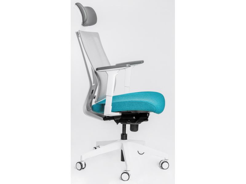 Эргономичное сиденье изготавливается путем применения плотного пенополиуретанового наполнителя и обивки из износостойкой ткани серого, синего или черного оттенка.Сетчатая спинка дополняется механизмом для поясничной поддержки, действие которого усиливается за счет эластичной и упругой мембранной обивки.