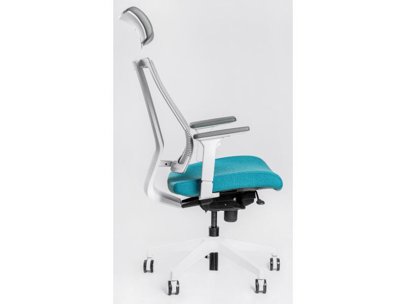 Спинка подстраивается под анатомию пользователя, повторяя контуры тела. Адаптивная спинка с изменяемой геометрией дополняется настраиваемым по высоте и глубине посадки сиденьем.