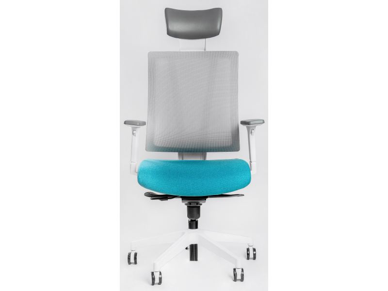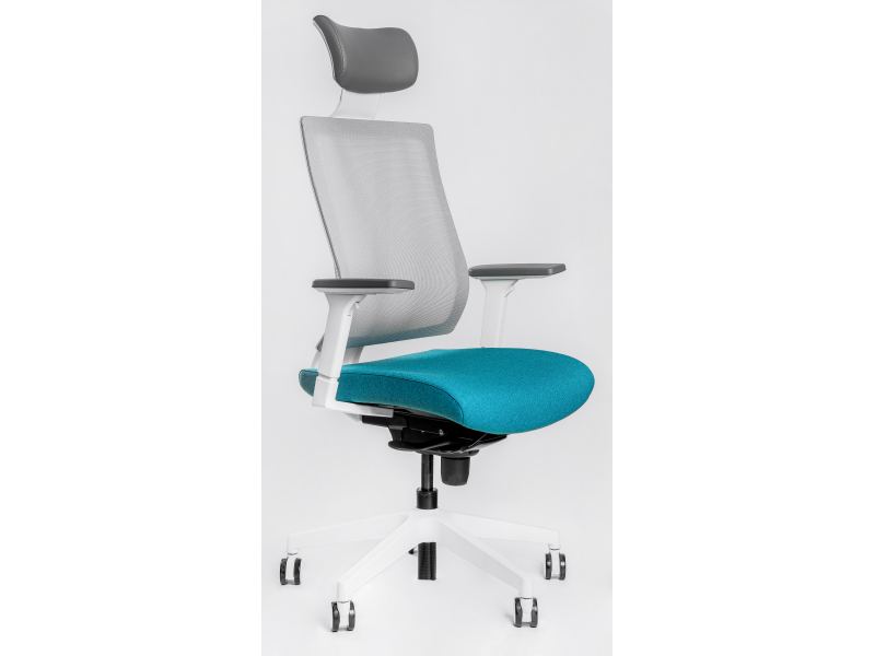 Кресло серии Falto G1 каркас белый, спинка серая, сидение синие.