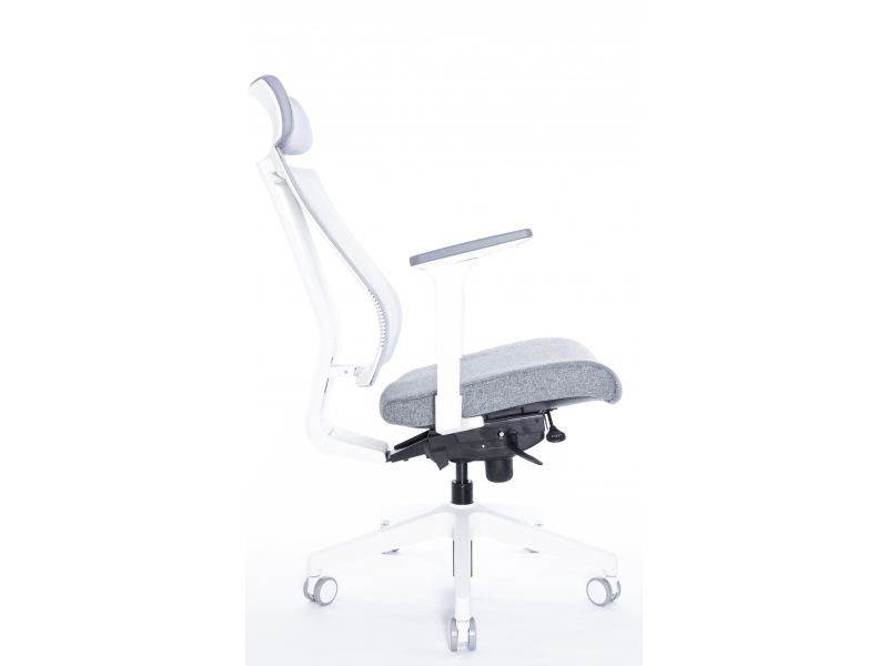 Эргономичное сиденье изготавливается путем применения плотного пенополиуретанового наполнителя и обивки из износостойкой ткани серого, синего или черного оттенка.Сетчатая спинка дополняется механизмом для поясничной поддержки, действие которого усиливается за счет эластичной и упругой мембранной обивки.