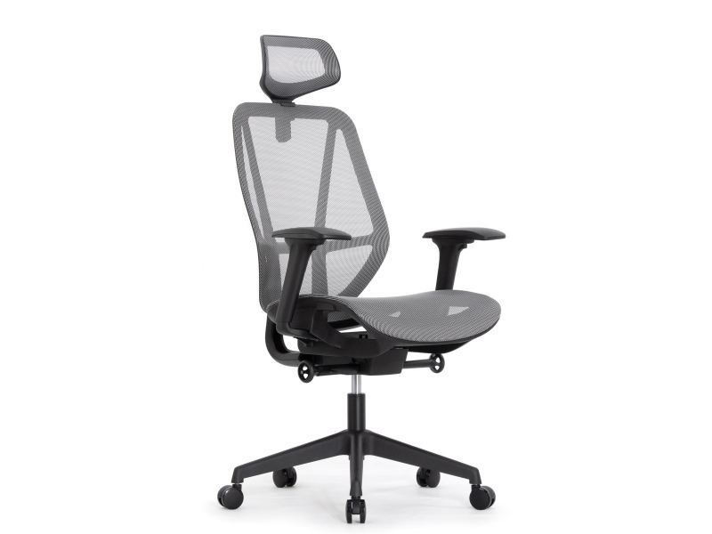 Кресло Falto Hop Eco HT-702A (чёрный каркас, обивка сетка серый, подголовник)