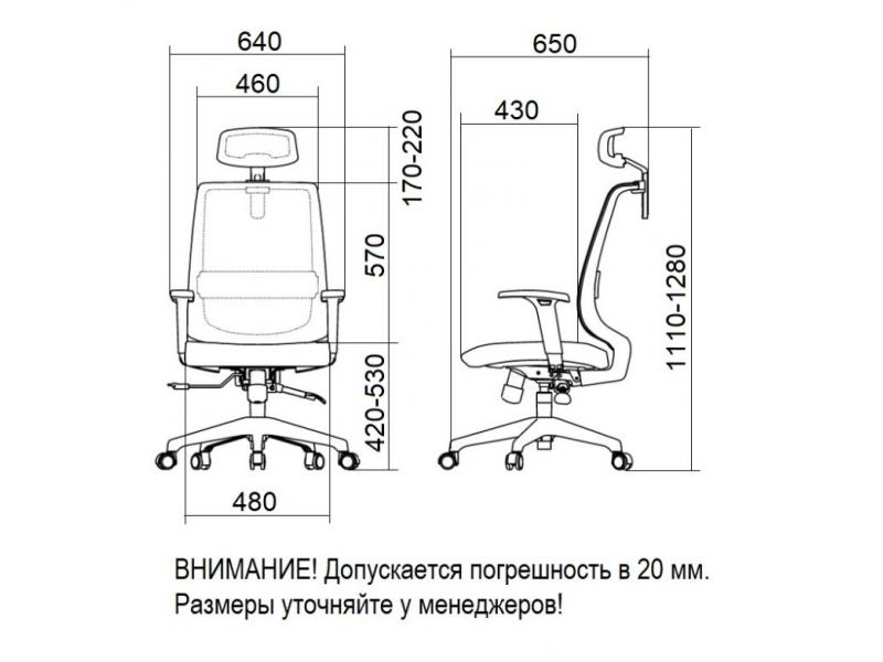 - Настраиваемые по высоте выдвижные подлокотники.