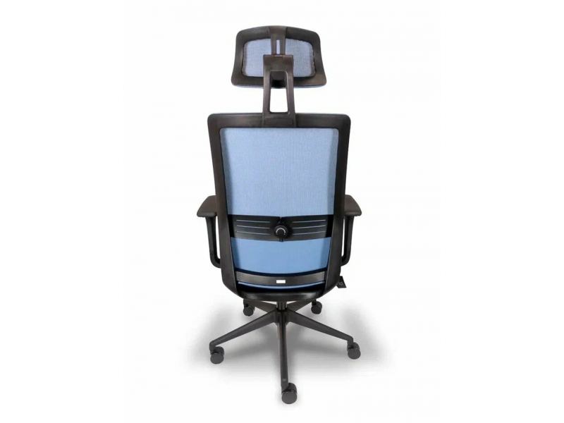 - Спинка изготовлена из синей сетки, обеспечивающей отличную вентиляцию и комфорт при длительном использовании.