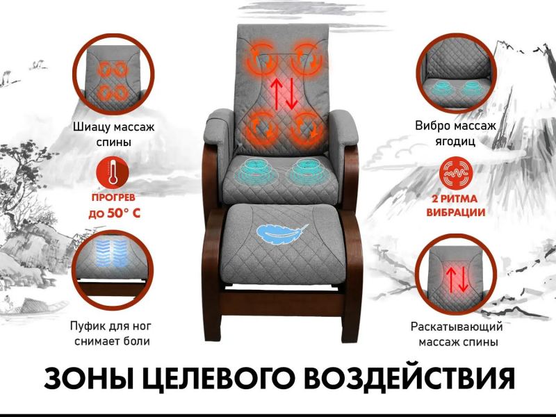 - Удобное и стильное кресло-качалка с функцией массажа
