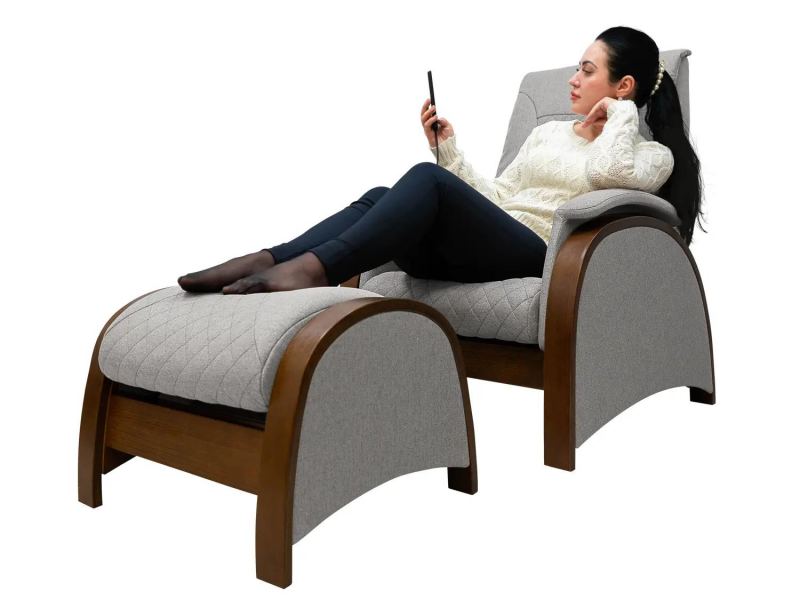 - Дополнительный пуфик для ног улучшает комфорт