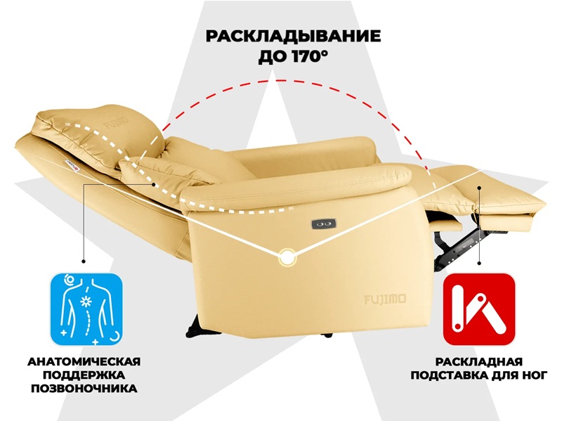 - В кресле удобно смотреть ТВ и даже спать, ведь наклон спинки достигает 170 градусов!