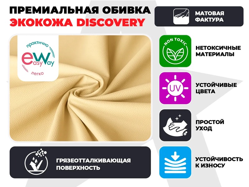 - Обивка из мягкой и износостойкой экокожи DISCOVERY прослужит не один год