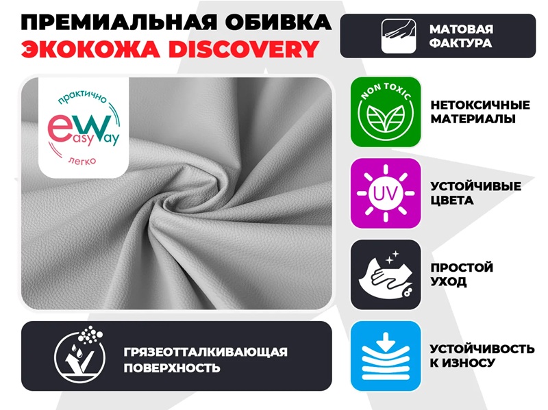 - Обивка из мягкой и износостойкой экокожи DISCOVERY прослужит не один год