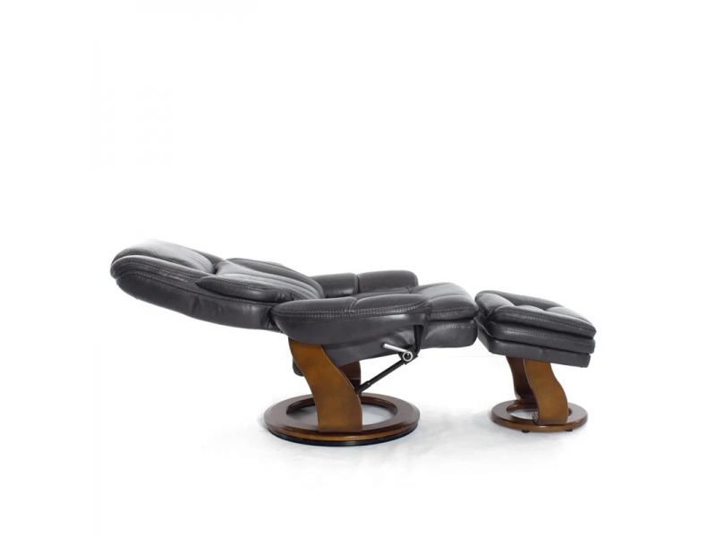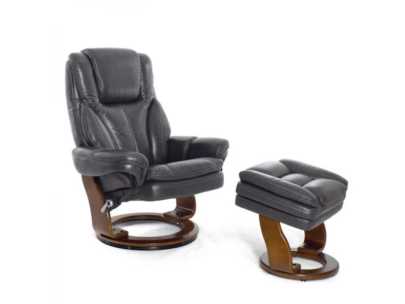 Механический реклайнер из натуральной кожи с пуфом для ног Relax Hana 7753WB темно-серый