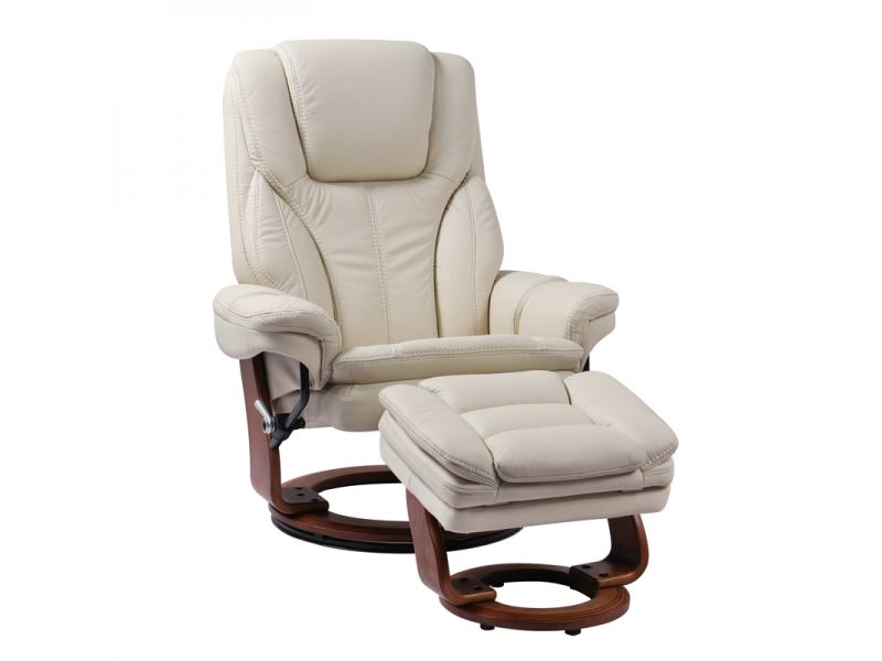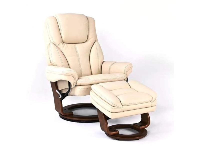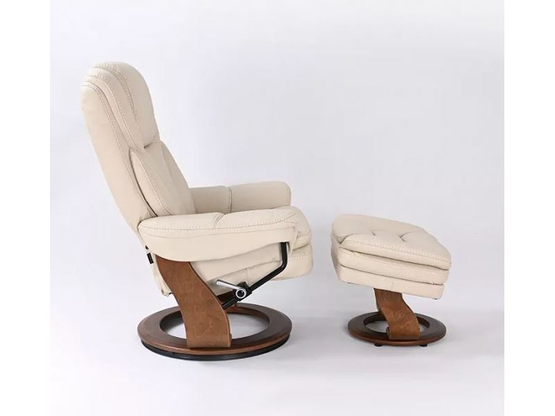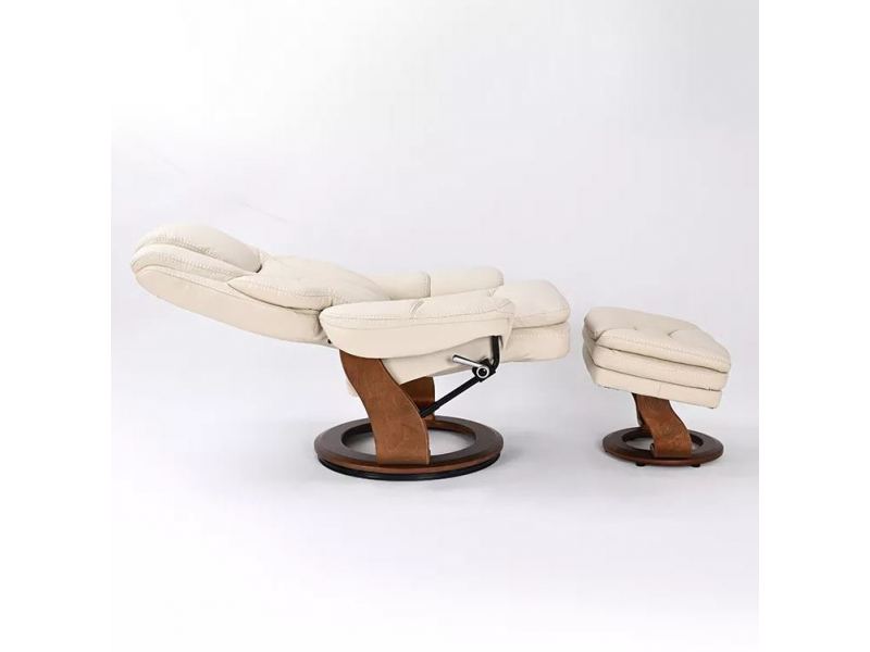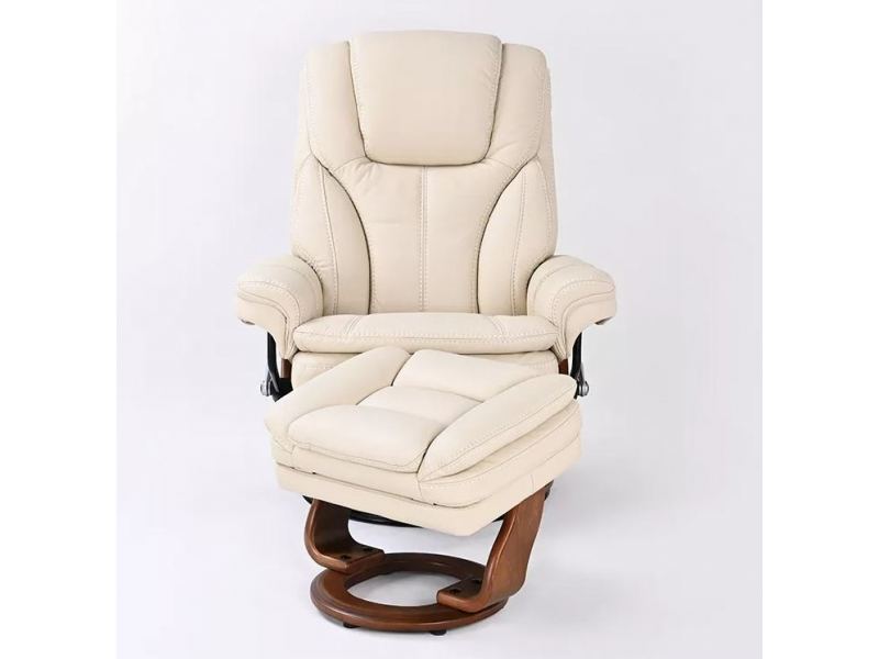 Механический реклайнер из натуральной кожи с пуфом для ног Relax Hana 7753WB кремовый