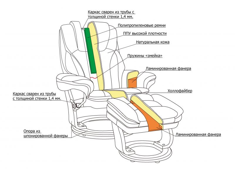 Все в этом кресле балансирует на грани, не только дизайн, но и внутреннее наполнение, так как несмотря на свою мягкость имеет достаточно плотное наполнение для сохранения эргономики и ортопедической поддержки, как в поясничном, так и в шейном отделе. Каждый изгибэтого кресла, это точно продуманная математическая модель для Вашего комфорта.