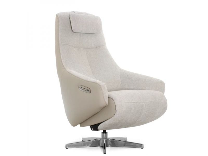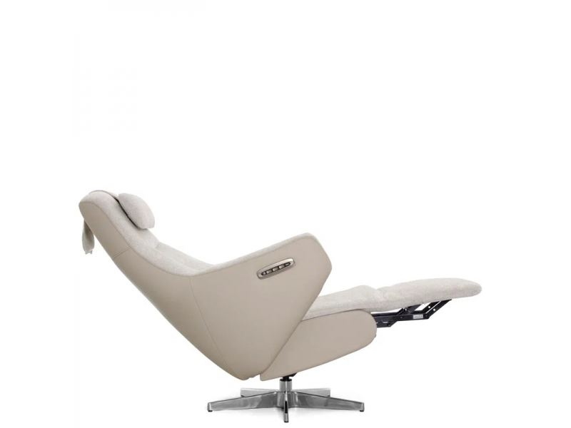 Кресло электрореклайнер FALTO Live (3 мотора, поясничный упор, шенилл, натуральная кожа, светлый)