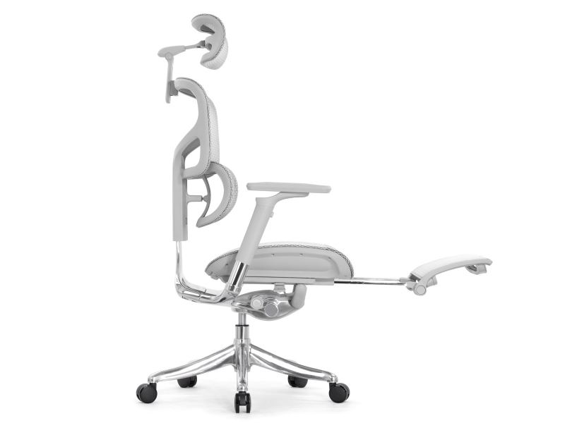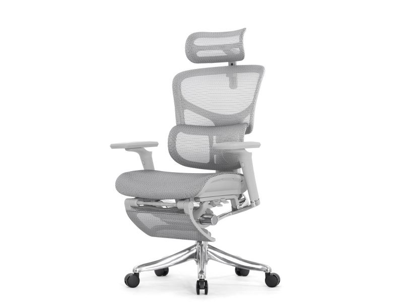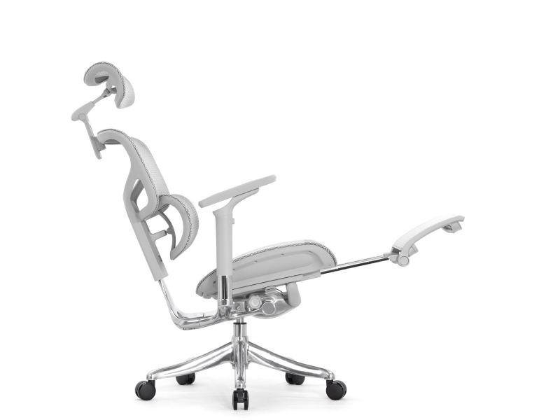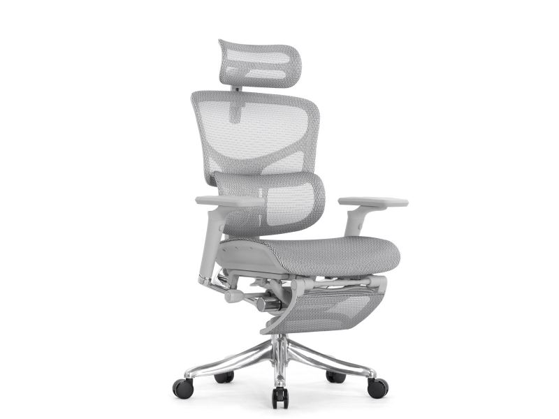 Кресло с подножкой Falto Pro 2 (3D поясничный упор, подголовник 4D,сетка, каркас серый, белый)