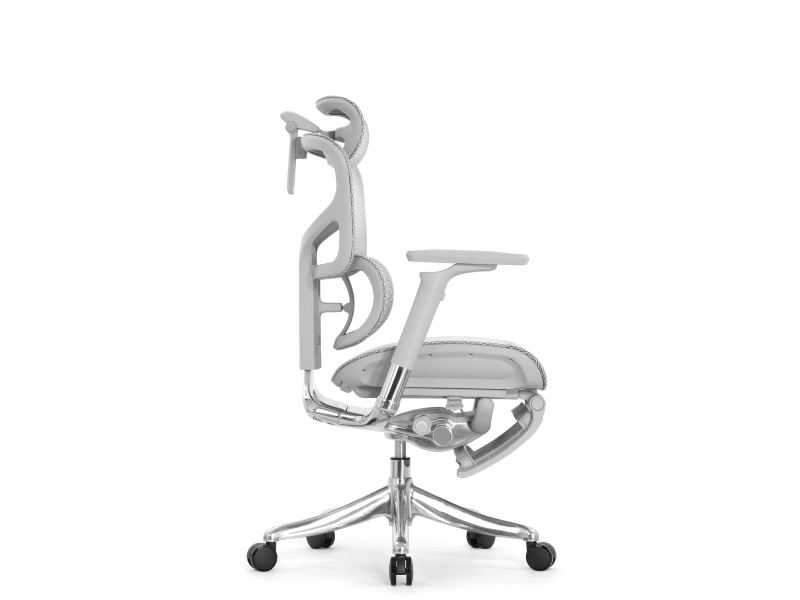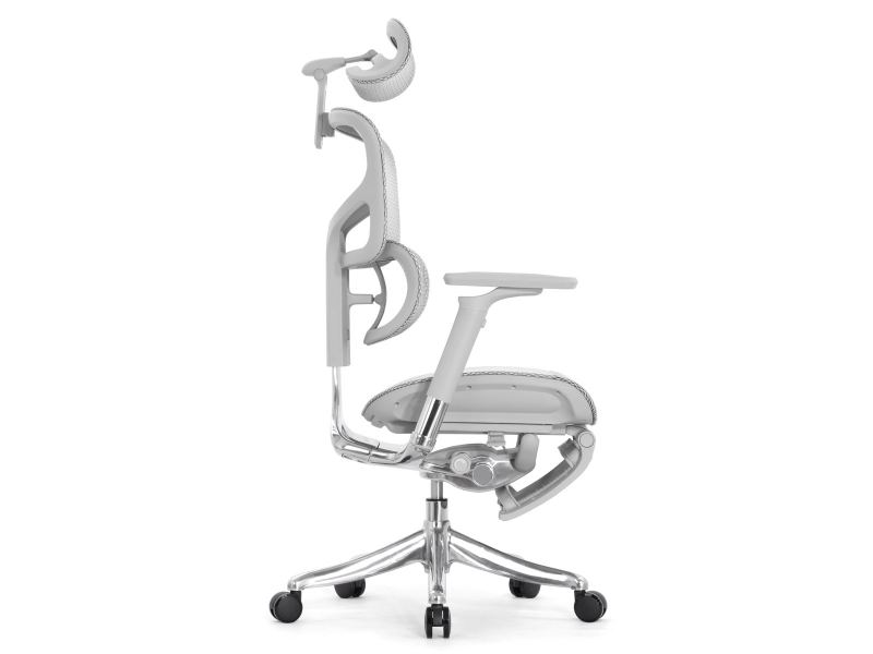 - Механизмы: 3D поясничный упор регулируется по высоте и глубине для поддержки поясницы, а подголовник 4D — по высоте, углу наклона и глубине.