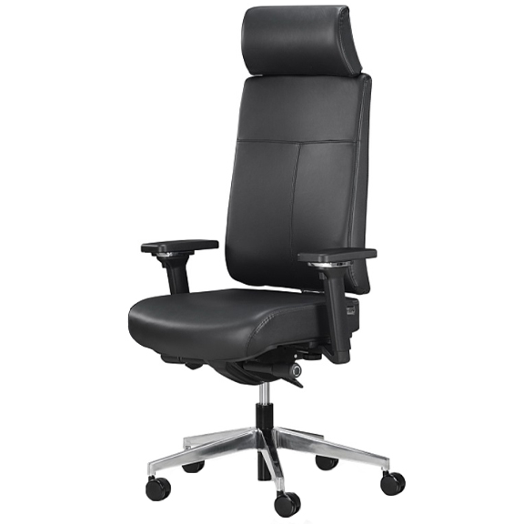 Кресло Trona 1702-18H_Leather (черный каркас/черная кожа/ал. крестовина)