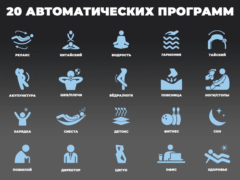 - 20 авто программ применяют различные методики японской и китайской гимнастики оздоровления