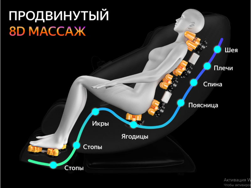 - Массаж Шиацу в режиме 8D обеспечивает более глубокое воздействие