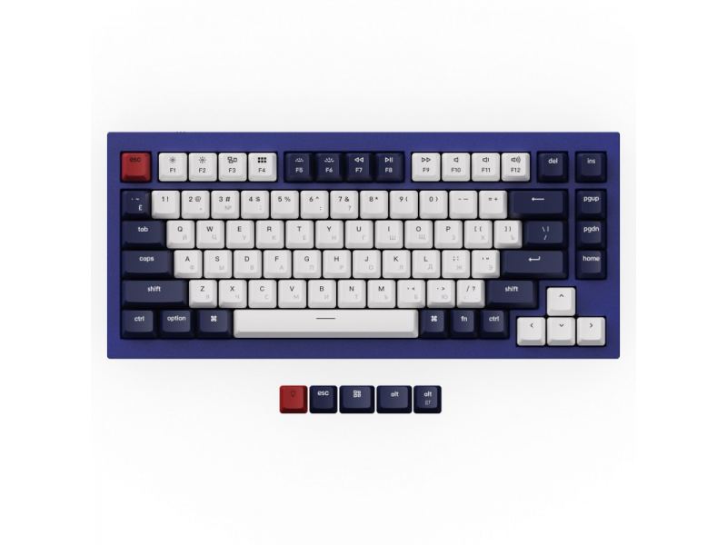 Механическая клавиатура QMK Keychron Q1, 84 клавиши, алюминиевый синий корпус, RGB подсветка, Gateron G Phantom Red Switch