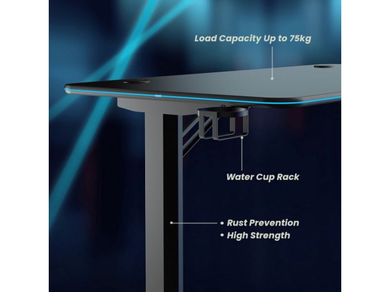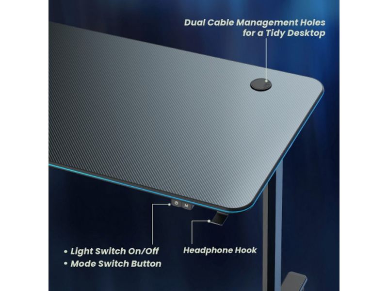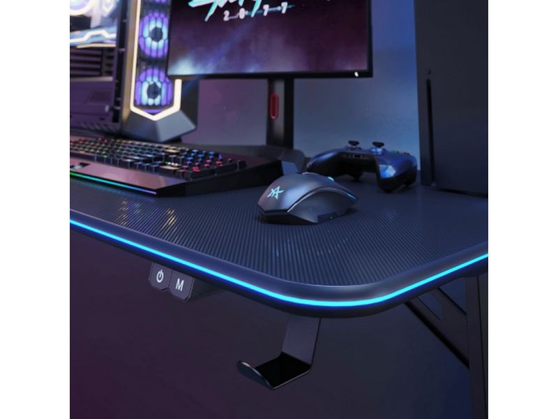 Игровой стол FG-GIR-54B оснащен уникальной оптоволоконной подсветкой по краям, которая создает захватывающую боевую атмосферу. Оснащен двумя кабельными втулками для обеспечения чистоты игровой станции. I-образные ножки изготовлены из холоднокатаной стали с нежной металлической текстурой и выдерживают нагрузку до 75 кг.