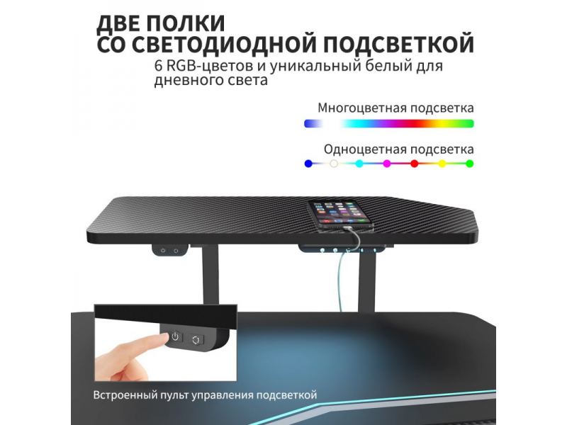 Полная функциональность: игровой стол поставляется с 2 полками под мониторы с RGB-подсветкой для ПК-геймеров и стримеров. 2 слота под планшеты служат для установки мобильных телефонов и планшетов. 2 отверстия для кабелей и 2 силовых подрозетника позволяют удобно организовать рабочее пространство. Подстаканник и двойной держатель наушников по боковым сторонам столешницы. Вы получите идеальную боевую станцию для победы над соперниками.