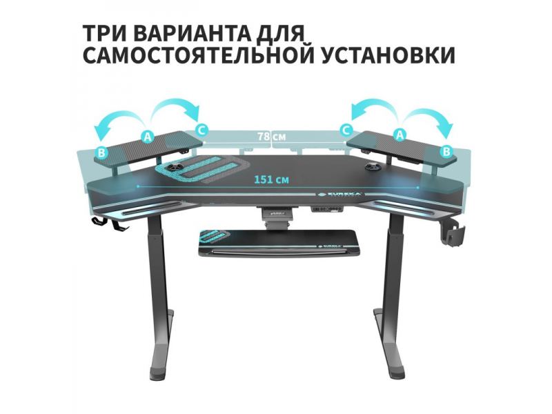 Стол для компьютера (для геймеров) с подставкой под клавиатуру и электрической регулировкой по высоте Eureka ERK-ES71-B-EU.