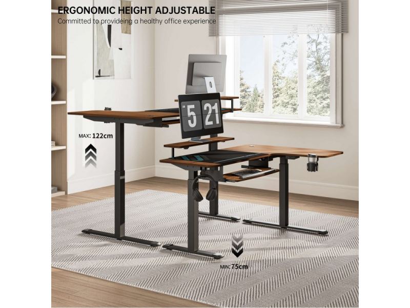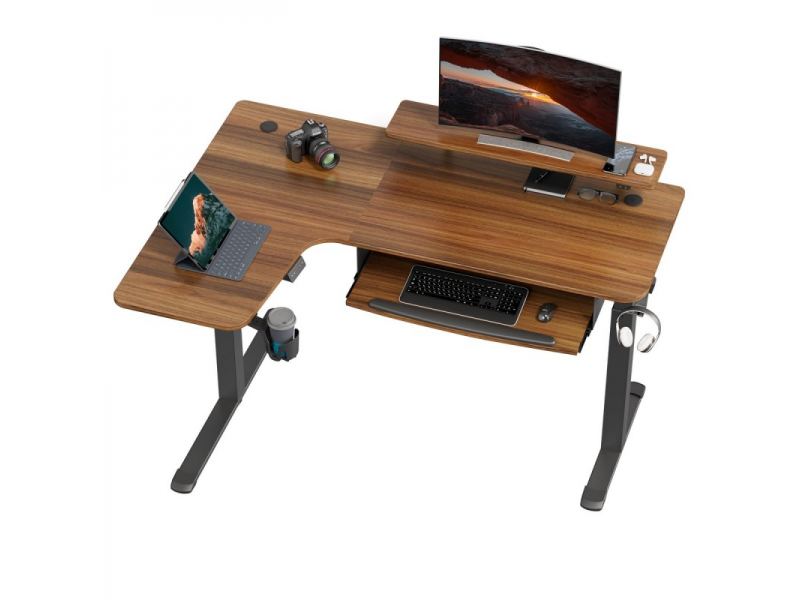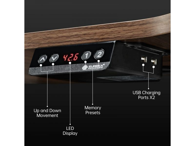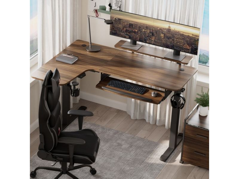 Угловой компьютерный стол Eureka L60 Gaming Desk c электрической регулировкой по высоте - идеальный выбор тех, кому необходимо расширенное пространство для работы. L60 имеет 60-дюймовую столешницу с гладким покрытием в стиле натуральной деревяной доски. На столе Eureka L60 можно с лёгкостью разместить несколько мониторов и необходимые девайсы для осуществления вашей деятельности. А такие решения по организации пространства, как надстройка для монитора и подставка под клавиатуру увеличат рабочее пространство минимум на 25%ю Стол регулируется по высоте и не вибрирует при подъёме/опускании, благодаря плавному пуску/остановке. Улучшенный многофункциональный контроллер с передней стороны стола имеет 2 USB порта и может хранить 4 предварительно запрограммированных высоты. А интеллектуальный датчик предотвращения столкновений Eureka был специально разработан для обеспечения безопасности объектов вокруг вашего стола при изменении высоты. Вам не надо волноваться о том, что стол столкнется с принтером или офисным шкафом, датчик защиты от столкновений не позволит столу ударить предметы вокруг стола. А благодаря специальной системе управления кабелями, на вашем столе никогда не будет запутанных проводов.
