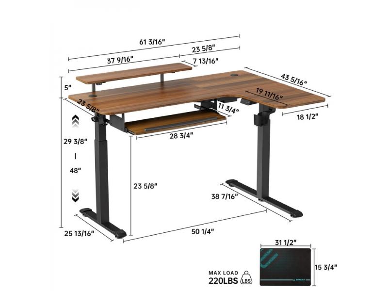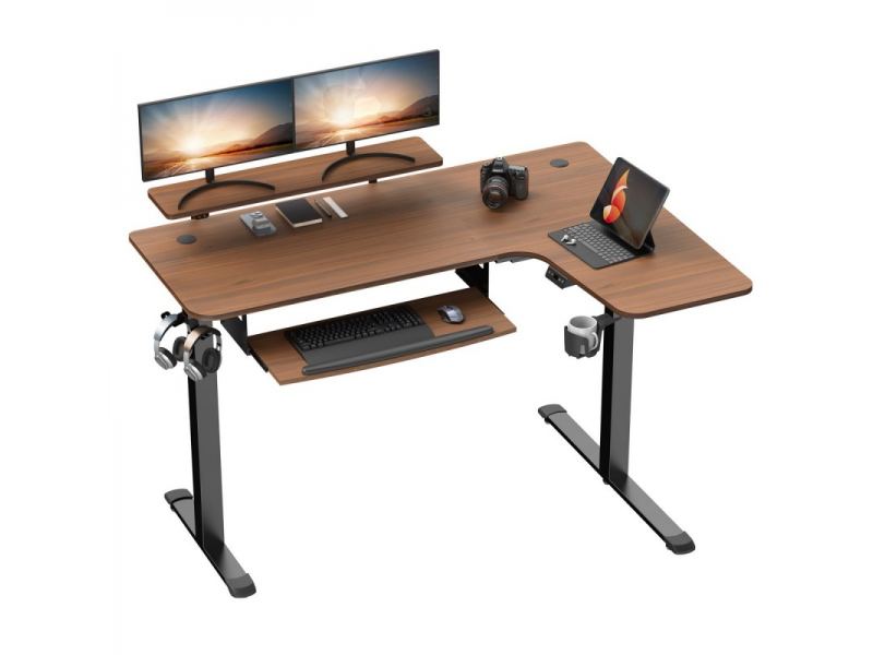 Угловой компьютерный стол Eureka L60 Gaming Desk c электрической регулировкой по высоте - идеальный выбор тех, кому необходимо расширенное пространство для работы. L60 имеет 60-дюймовую столешницу с гладким покрытием в стиле натуральной деревяной доски. На столе Eureka L60 можно с лёгкостью разместить несколько мониторов и необходимые девайсы для осуществления вашей деятельности. А такие решения по организации пространства, как надстройка для монитора и подставка под клавиатуру увеличат рабочее пространство минимум на 25%ю Стол регулируется по высоте и не вибрирует при подъёме/опускании, благодаря плавному пуску/остановке. Улучшенный многофункциональный контроллер с передней стороны стола имеет 2 USB порта и может хранить 4 предварительно запрограммированных высоты. А интеллектуальный датчик предотвращения столкновений Eureka был специально разработан для обеспечения безопасности объектов вокруг вашего стола при изменении высоты. Вам не надо волноваться о том, что стол столкнется с принтером или офисным шкафом, датчик защиты от столкновений не позволит столу ударить предметы вокруг стола. А благодаря специальной системе управления кабелями, на вашем столе никогда не будет запутанных проводов.