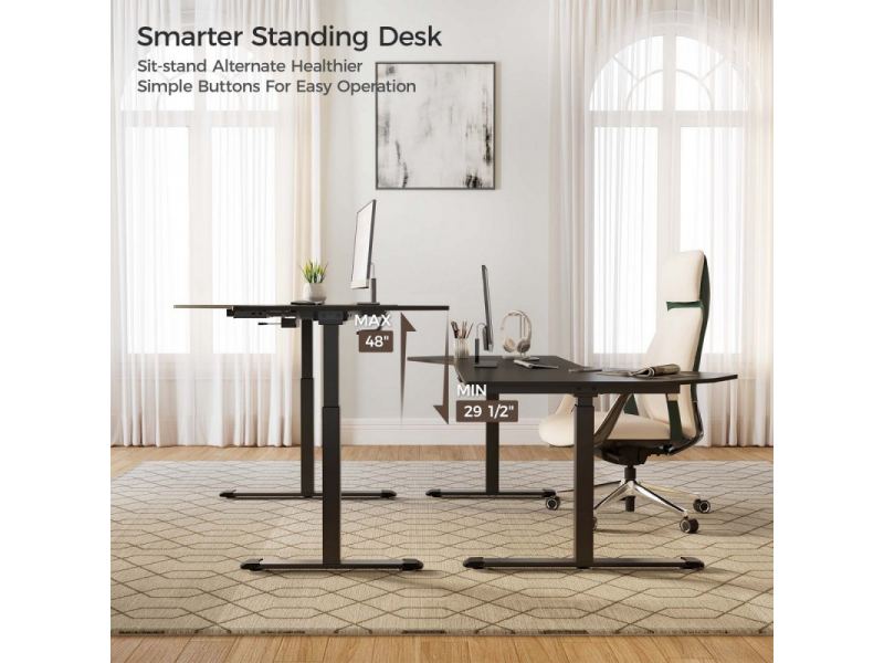 - Прочный стоячий стол с усовершенствованной двухмоторной системой, которая вырабатывает достаточно мощности для плавного, равномерного и бесшумного подъема стола.
