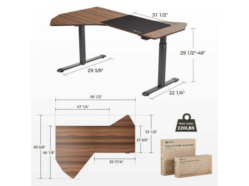 Стол компьютерный с электроприводом Eureka ERK-EDI-FS-WN (Fan shaped), орех